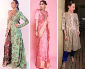 अगर ट्रेडिशनल लुक की बात करें, तो Karisma Kapoor का सिल्क सूट स्टाइल खासतौर पर इंस्पायर करता है। गहरे रंग, एलिगेंट नेकलाइन और सिंपल डिजाइन वाला सूट न सिर्फ पहनने में कंफर्टेबल होता है, बल्कि आपको एक रॉयल और क्लासी लुक भी देता है। आप अपने हिसाब से इसमें छोटे-छोटे बदलाव करके इसे और भी पर्सनलाइज कर सकती हैं।