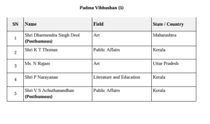 साल 2026 के लिए राष्ट्रपति ने 131 पद्म पुरस्कार देने की मंजूरी दी है। अभिनेता धर्मेंद्र सिंह देवल (मरणोपरांत), केटी थॉमस, एन राजम, पी नारायणन, वीएस अच्युतानंदन (मरणोपरांत) को पदम विभूषण सम्मान दिया है। झारखंड के पूर्व सीएम शिबू सोरेन (मरणोपरांत) सहित 13 हस्तियों को पद्म भूषण सम्मान से नवाजा है।