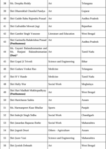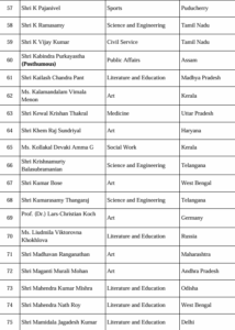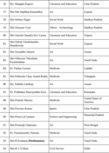 क्रिकेटर रोहित शर्मा सहित 113 विभूतियों को पद्म श्री पुरस्कार से सम्मानित किया है। पुरस्कार पाने वालों में 19 महिलाएं हैं, जबकि इस सूची में विदेशी नागरिकों, अनिवासी भारतीयों (एनआरआई), भारतीय मूल के व्यक्तियों (पीआईओ) और भारत के प्रवासी नागरिकों (ओसीआई) की श्रेणी में छह लोग भी शामिल हैं, साथ ही 16 लोगों को मरणोपरांत सम्मानित किया गया है।
